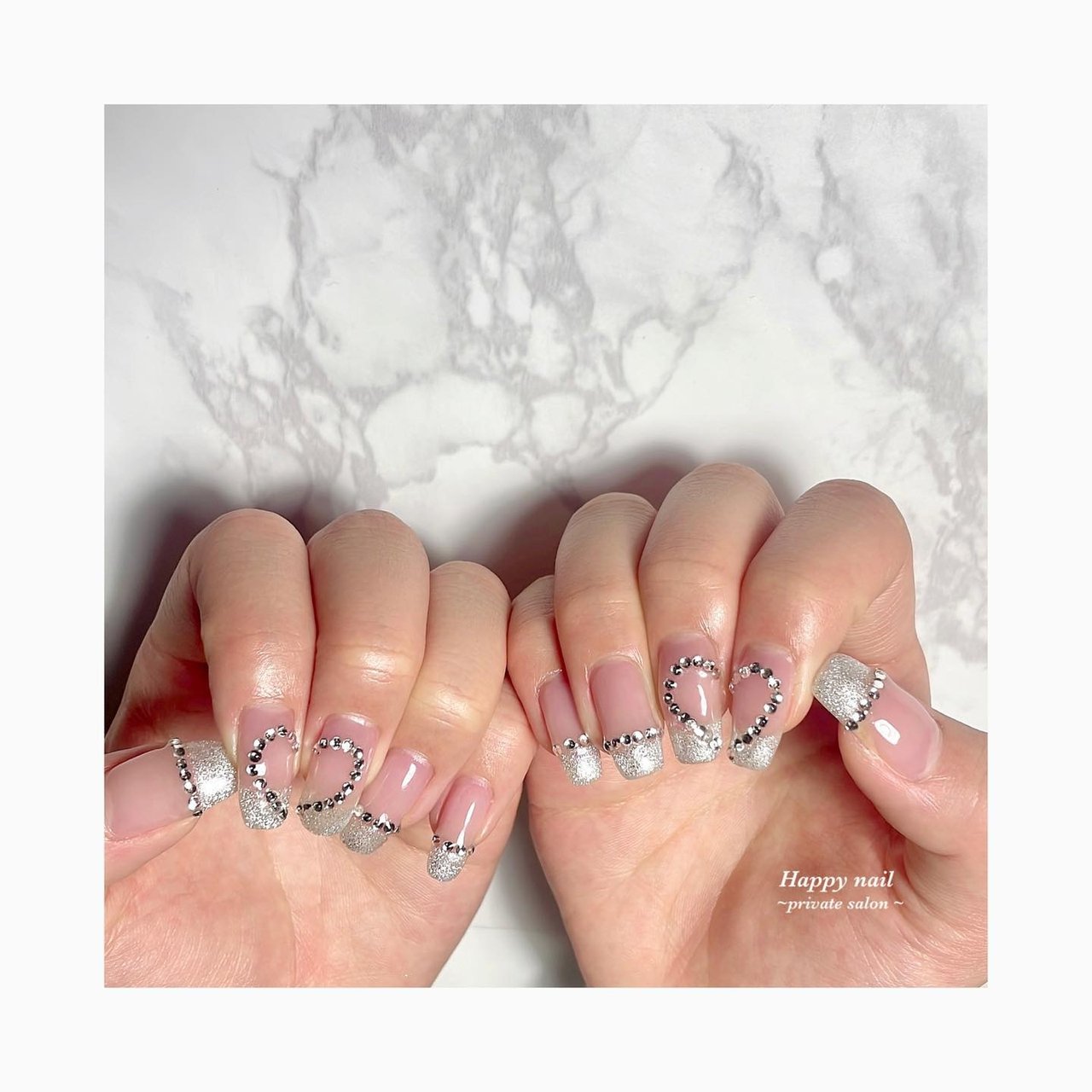 フレンチ ラメ ハート マグネット ピンク Happy Nailのネイルデザイン No ネイルブック